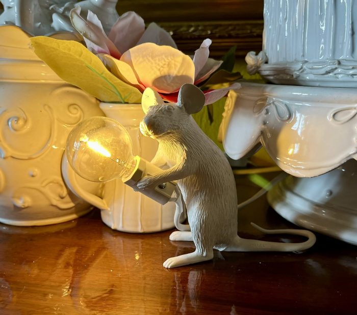 FOTO: Birgitta Unger-Richter. Kein Murmeltier, sondern eine Maus in einem Café bei Mering, die auch Licht ins Dunkel bringt.